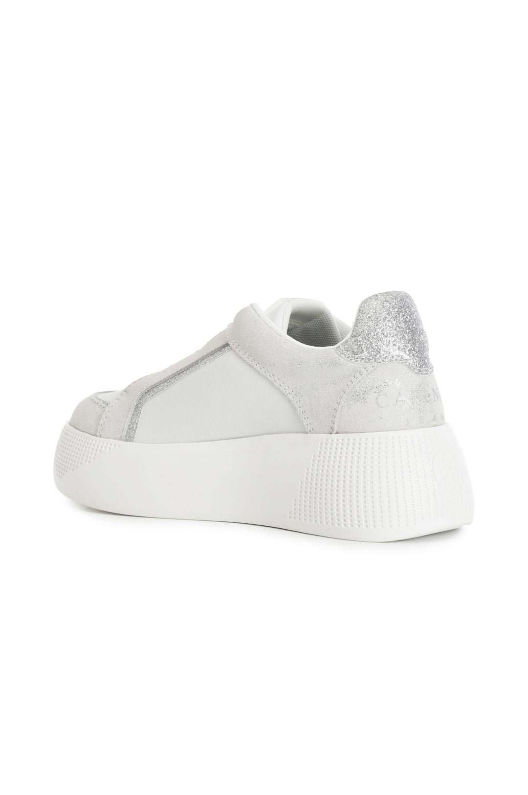 Sneakers modello slip-on in pelle scamosciata laminata. logo embossed ricamato laterale con monogramma cafènoir. suola alta 55mm