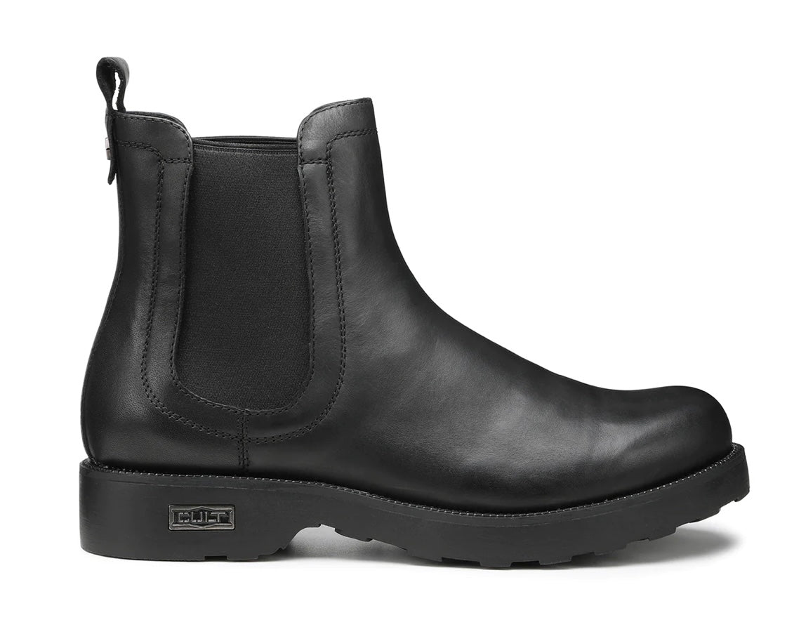 Gli stivaletti in pelle firmati Cult sono realizzati con silhouette beatle, realizzati in pelle nera con suola in gomma. Il modello garantisce una calzata perfetta grazie agli elastici sui lati. Un classico inglese da indossare con jeans e pantaloni più eleganti in egual modo.