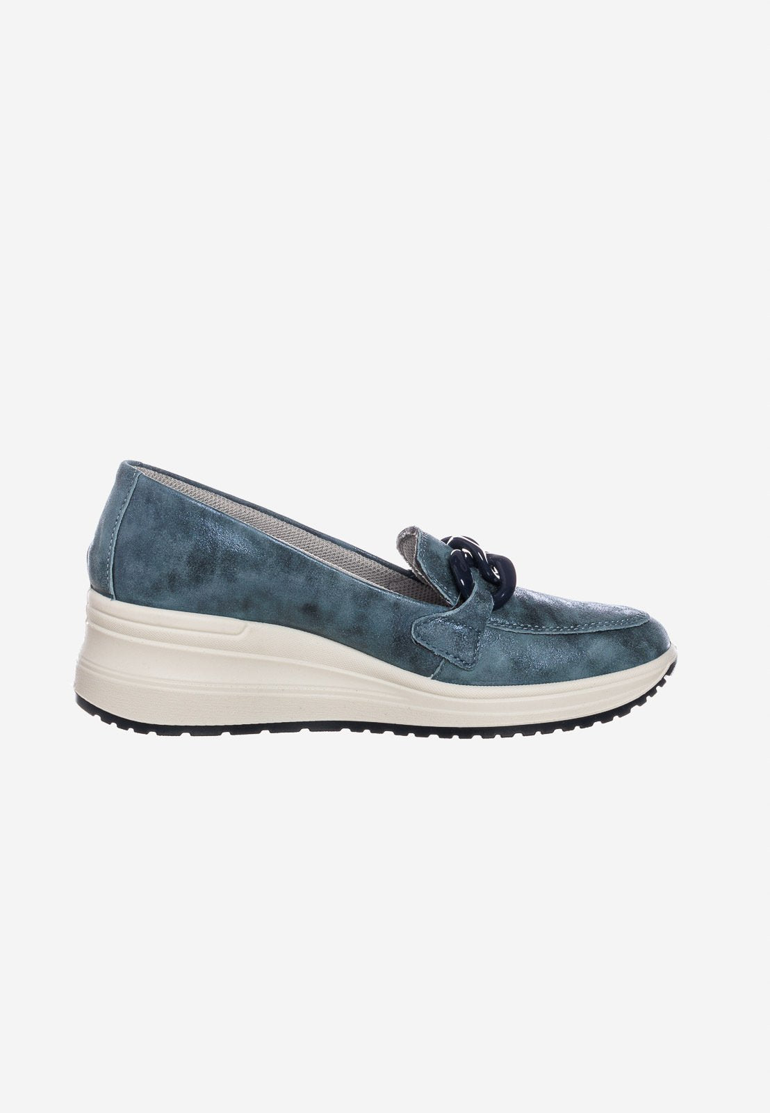 ENVAL Soft, Mocassini con zeppa in pelle color capra perl.nuv./blu da donna; Art.5760900