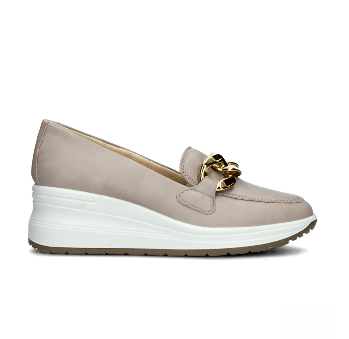Enval Soft, Mocassini con zeppa in pelle color vitello antik/visone da donna; 5760944