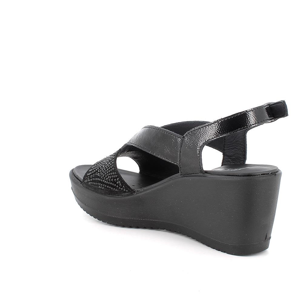 ENVAL Soft Sandali neri in pelle con zeppa da donna.Nero. 5786000