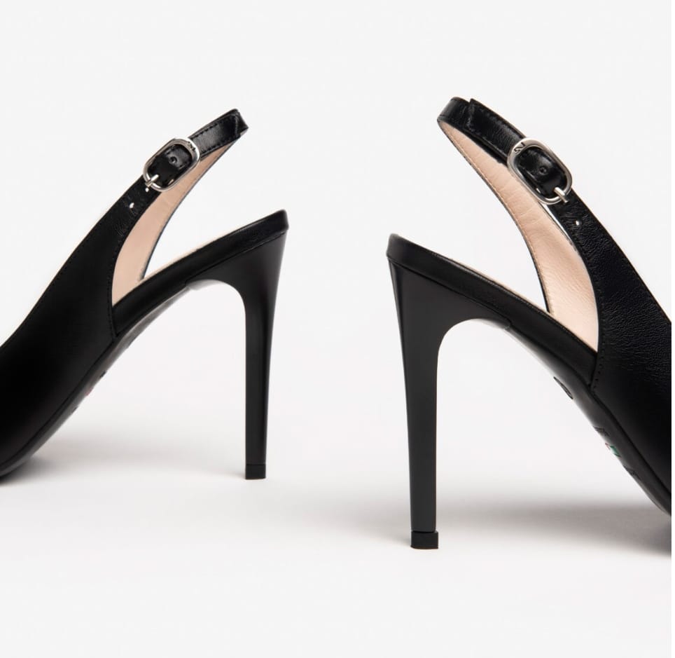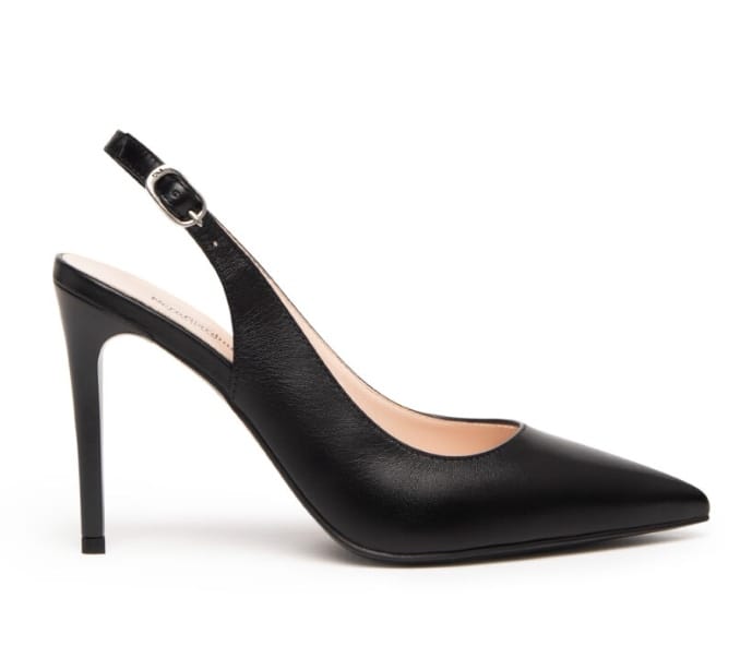 Nero Giardini in pelle nera, con punta affusolata, interno in pelle e fondo gomma con tacco a spillo 9,5 cm